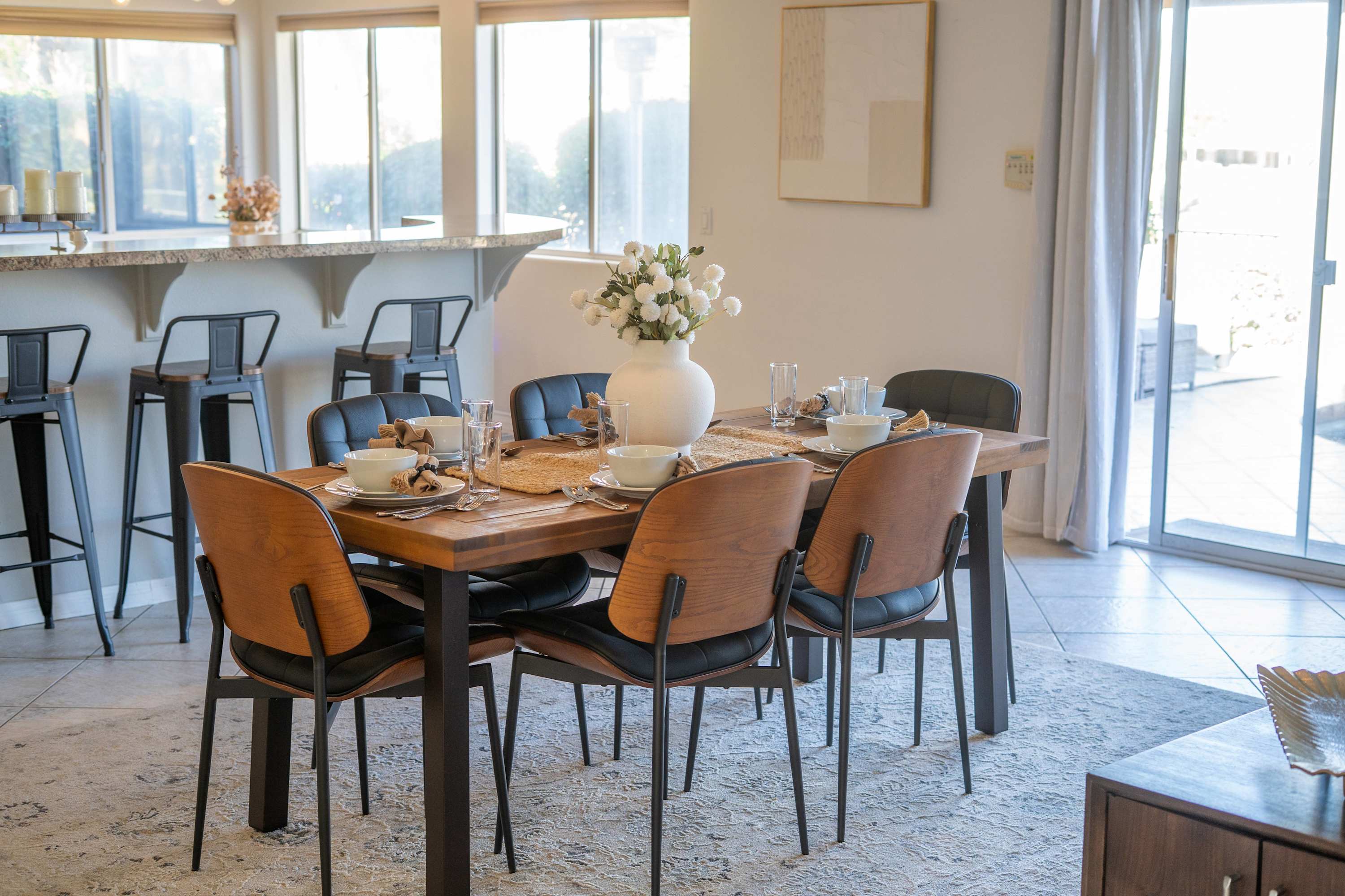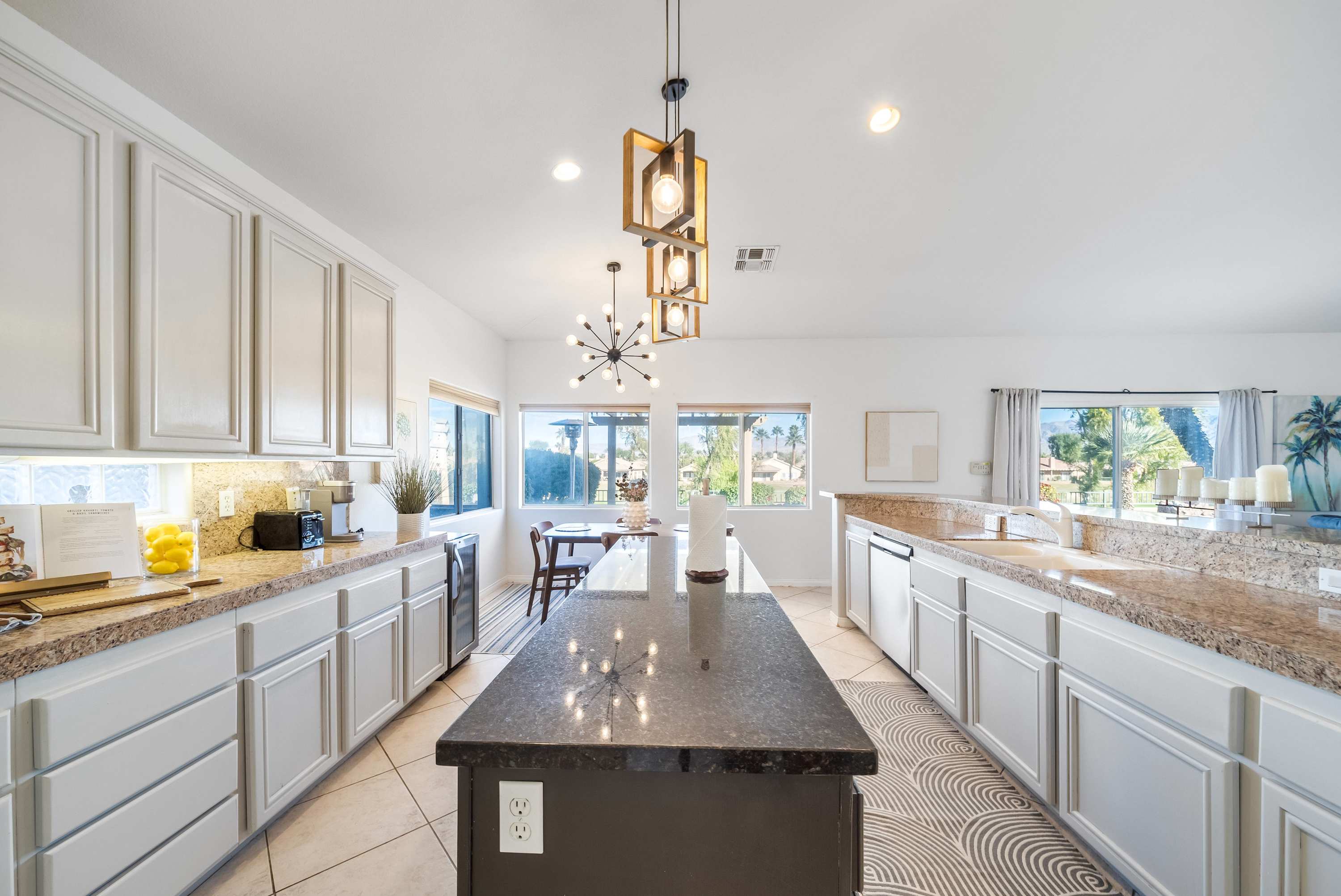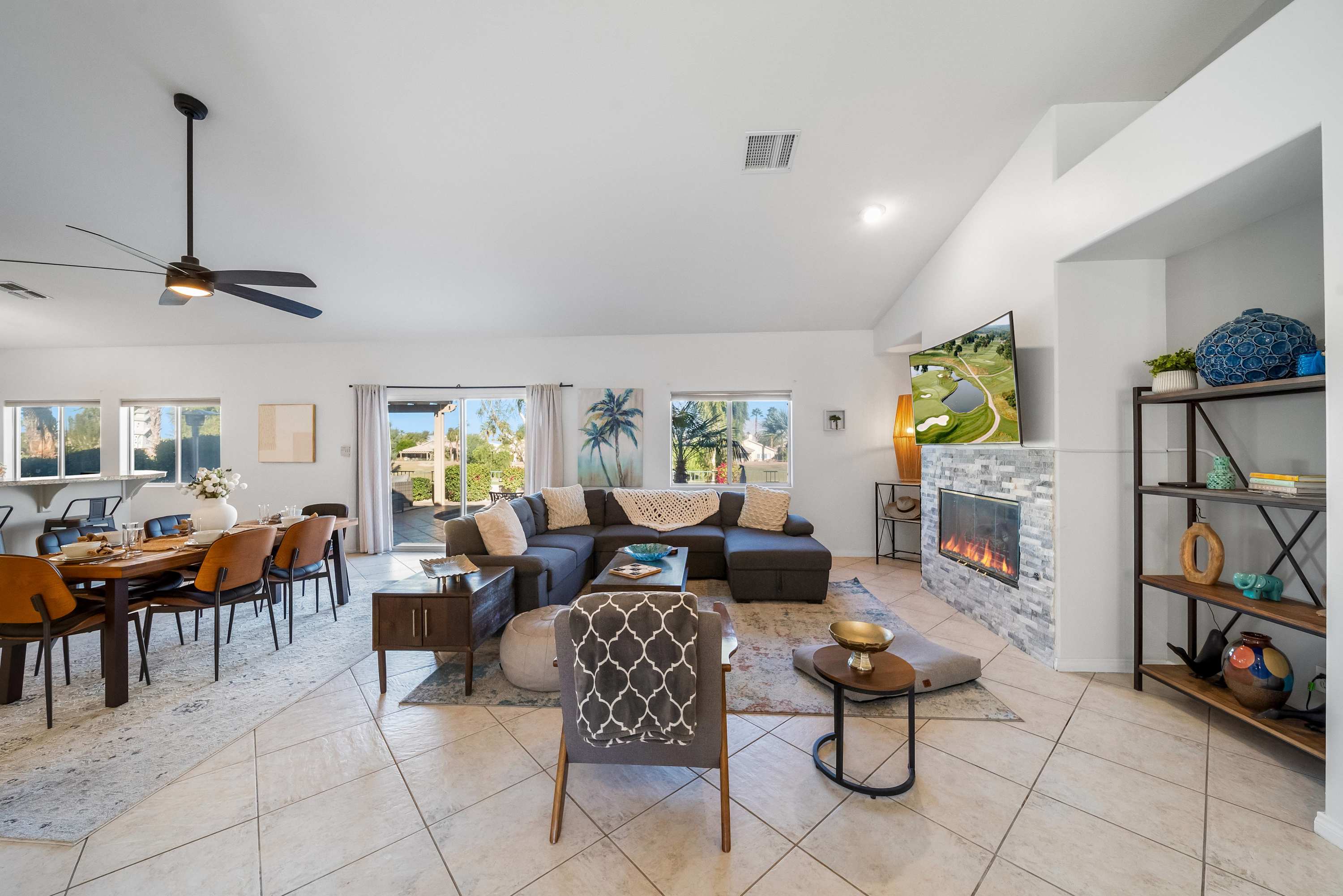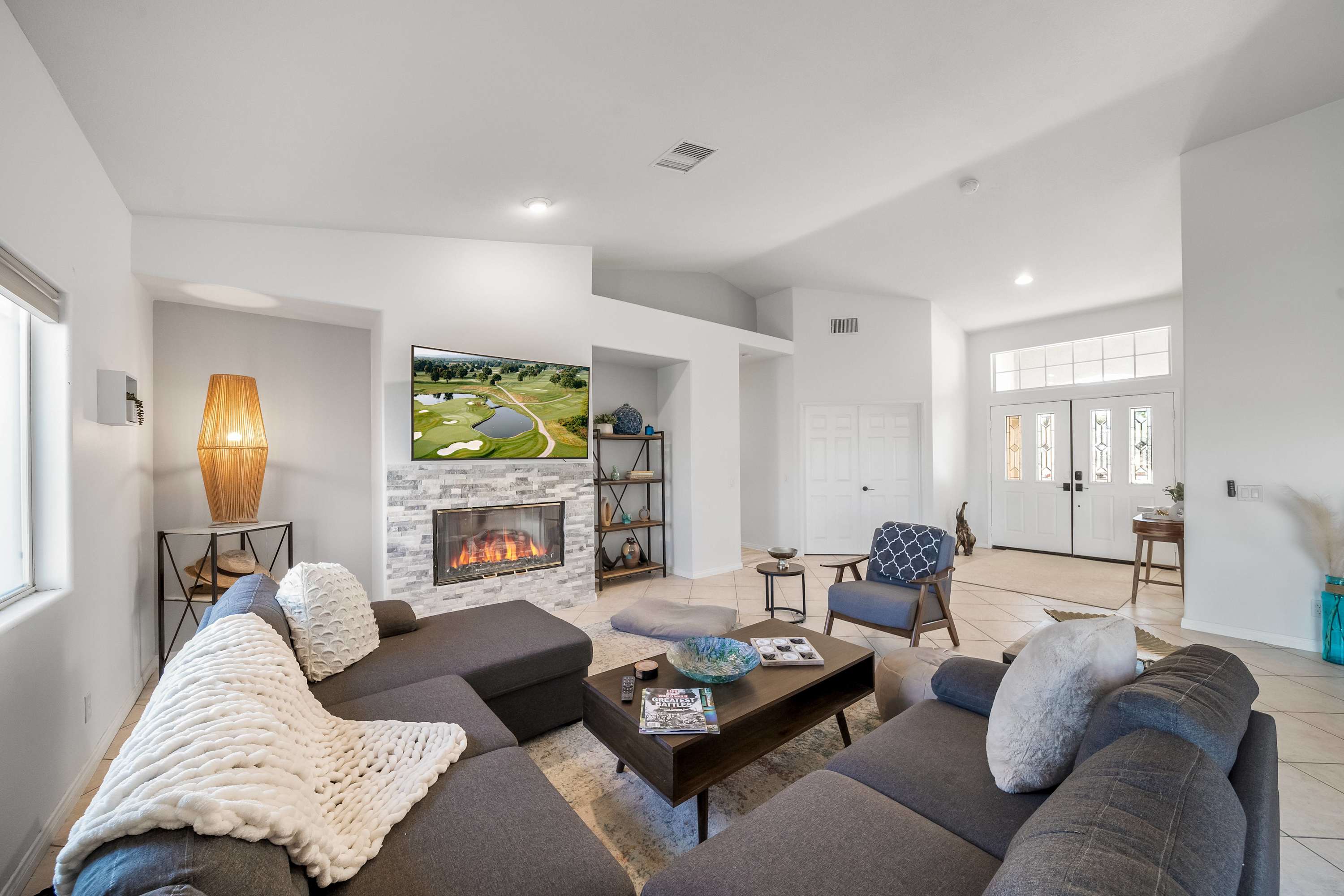 Sunlight pours into the main living area the moment you arrive, revealing an open, spacious layout that’s effortless to settle into. The open layout makes it easy to move through the home, with generous room to relax, work, or entertain. The space adapts easily to different needs—some days it's a place to unwind, other times it's ready for hosting and connection. The kitchen is well-equipped with modern appliances, ample cabinet storage, and a convenient breakfast bar. It’s set up for everyday cooking, with enough openness to stay connected during conversations or casual meals at the counter. Positioned next to the kitchen, the dining area offers a relaxed setting for shared meals or weekend brunches. The primary bedroom is set apart from the others, with its own en-suite bathroom that adds a bit of privacy and ease. It’s well-suited for someone looking for a personal corner to recharge. The three additional bedrooms are generously sized, offering flexibility for families, visiting guests, or anyone needing an office. The layout works well for longer stays, giving everyone enough space to spread out. Step into the backyard and you’ll find one of the home’s best features—a private outdoor space with sweeping mountain views and a wide-open desert sky. It’s a great spot for slow mornings, dinner outside, or evenings under the stars. An attached garage offers secure parking and additional storage—useful for keeping things organized. The home is also situated close to parks, schools, shopping, and local dining, making errands and outings easy to manage. And with Coachella Valley’s entertainment and outdoor attractions just a short drive away, there's always something nearby to explore.