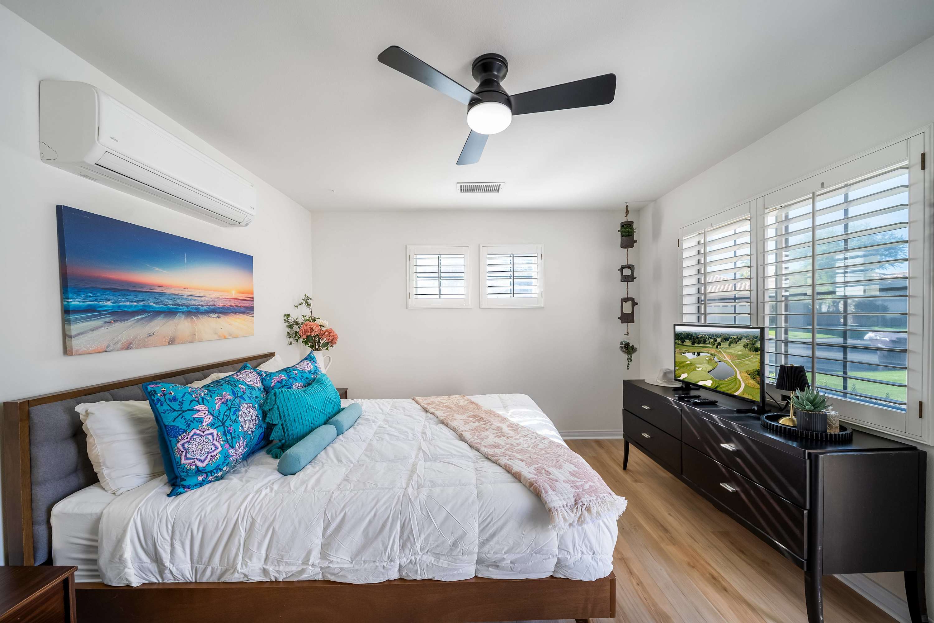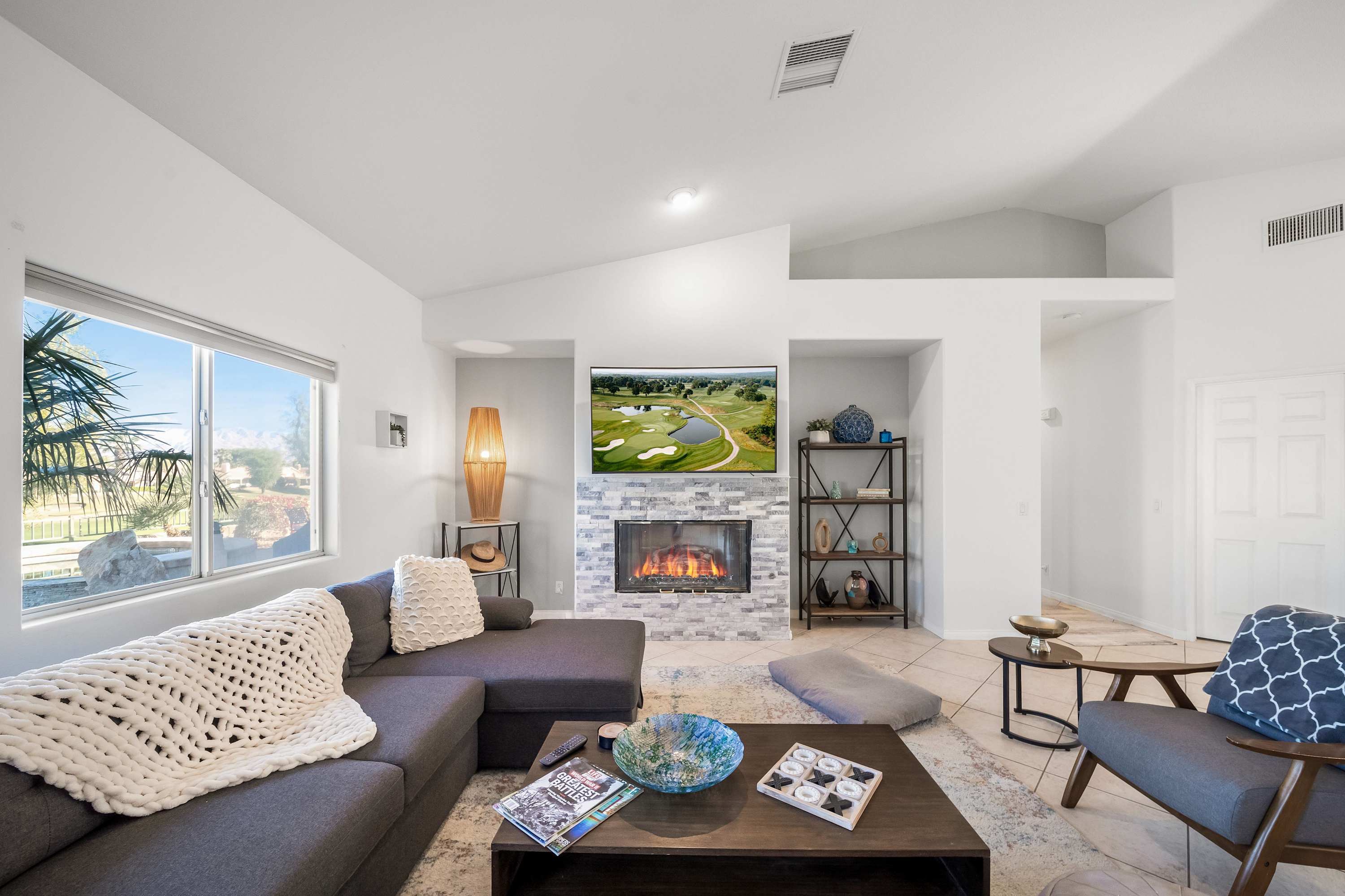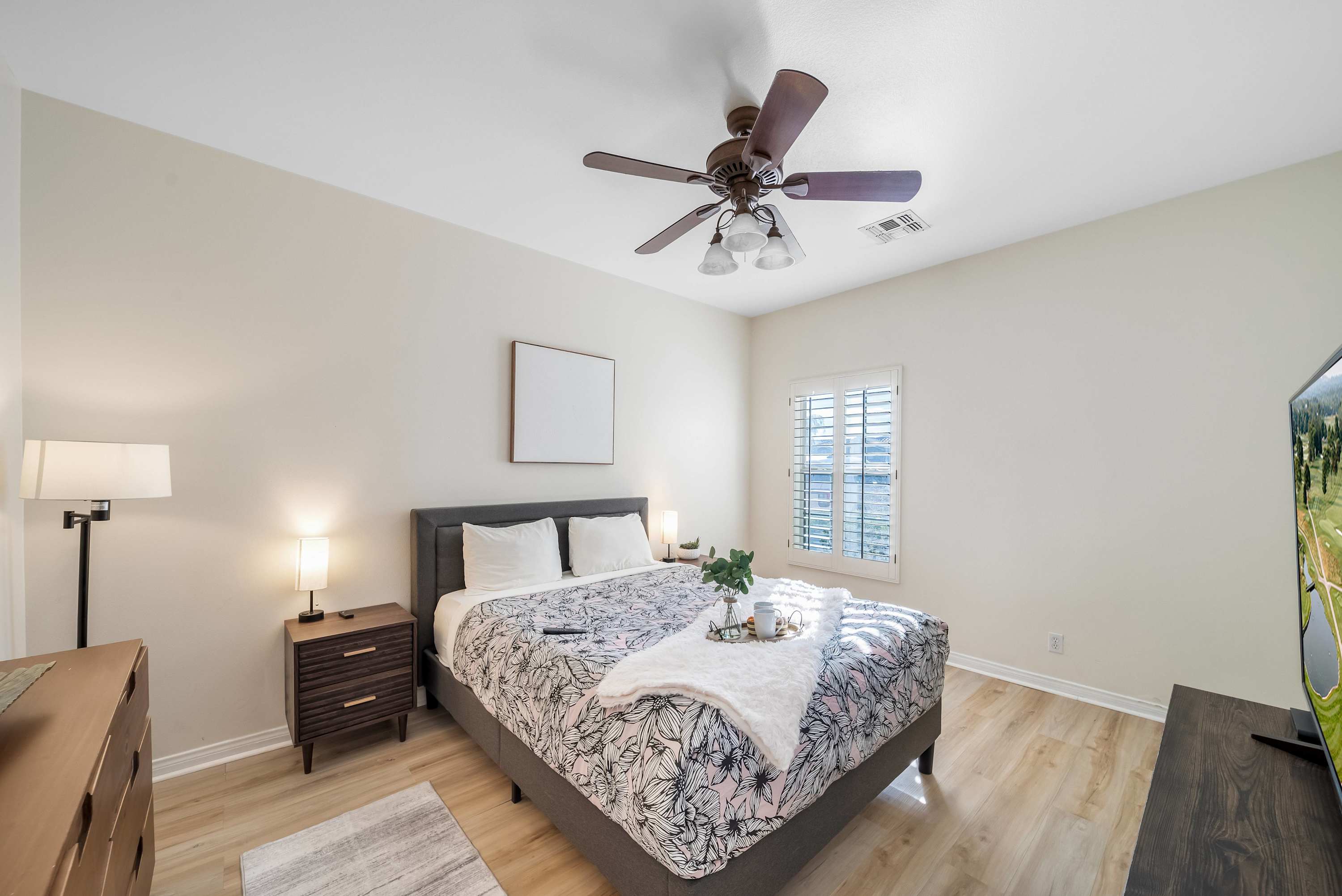 Bathed in golden desert light and framed by the majestic mountain views, Green Hill Oasis is a 4-bedroom, 4-bathroom retreat in the serene heart of Indio. With irresistible charm and captivating, picturesque views, this home invites you to unwind and recharge in total comfort. The true magic lies just outside—your private backyard oasis opens to vast skies and sweeping desert vistas, creating the perfect setting for outdoor relaxation and stargazing under the open sky. Security Deposit: A refundable security deposit is required and will be collected prior to your stay. Full details provided upon booking. For long-term rentals, a California lease must be signed. Each rental includes utility caps for electricity, water, and gas, and the guest is responsible for any overages. The signing of the lease agreement must occur within 21 days of booking, provided the check-in date is more than 30 days away. If the check-in date is less than 30 days from the booking date, the lease agreement must be signed within 5 days of booking. Pets: Pets are subject to approval. Pet cleaning fees apply and vary depending on the breed and size. *Work vehicles are not permitted to be parked inside the community.