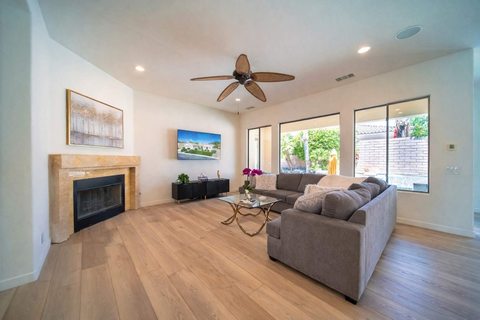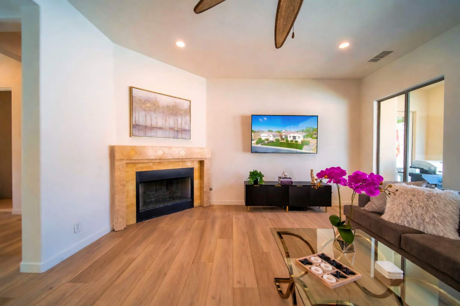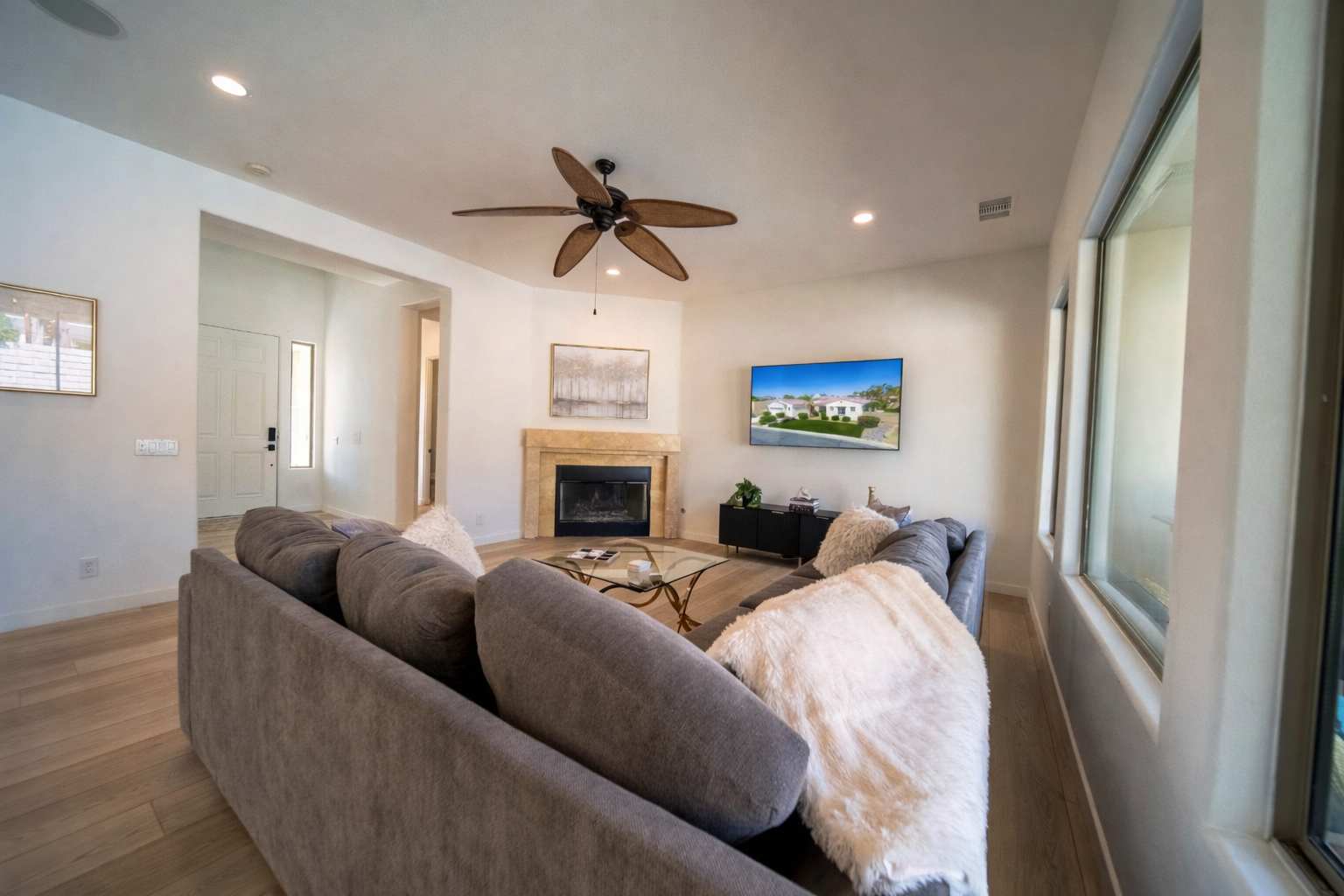 Prepare to be enchanted by this stunning single-story residence, strategically positioned within the highly desirable gated community of Renaissance. Located off Jefferson Street, this property offers the perfect blend of serenity in a quiet cul-de-sac and impressive curb appeal, setting the stage for an unforgettable vacation experience. Upon entering, you'll be greeted by the expansive main living area, thoughtfully designed with an open floor plan that radiates warmth and hospitality. The centerpiece of the living room is a magnificent fireplace (DECORATIVE ONLY - NOT USABLE) , creating a cozy atmosphere ideal for entertaining friends and family during your stay. For the aspiring chef or culinary enthusiast, the kitchen is a true masterpiece, featuring gorgeous granite counter tops and a suite of stainless steel appliances that include a gas cooktop, double ovens, a built-in microwave, dishwasher, and refrigerator. The formal dining space offers versatility, serving as a great spot for family meals, game nights, or as a temporary office space if needed. Your guests will enjoy the privacy of two spacious guest rooms connected by a convenient Jack & Jill bathroom, strategically placed on the opposite side of the house from the primary suite. The primary suite is a haven of luxury, featuring a spa-like bathroom with a soaking tub, separate shower, dual vanity, makeup counter, and a generously sized walk-in closet. Travertine tile flooring graces the common areas and bathrooms, elevating the overall aesthetic and ease of maintenance. Step into the backyard, and you'll discover your own private paradise, complete with a sparkling pool and spa, a swim-up bar, and a covered entertaining area - the perfect setting for creating cherished vacation memories. This property is not only a luxurious vacation retreat but also a convenient one. And the best part? It comes fully furnished and ready to accommodate your guests. Don't miss out on this incredible chance to own a furnished vacation rental that combines luxury, comfort, and convenience. Contact us now to secure your slice of heavenly living. Rates may vary per month. Rates will vary during peak season. Security Deposit: A refundable security deposit is required and will be collected prior to your stay. Full details provided upon booking. For long-term rentals, a California lease must be signed. Each rental includes utility caps for electricity, water, and gas, and the guest is responsible for any overages. The signing of the lease agreement must occur within 21 days of booking, provided the check-in date is more than 30 days away. If the check-in date is less than 30 days from the booking date, the lease agreement must be signed within 5 days of booking. Pets: Pets are subject to approval. Pet cleaning fees apply and vary depending on the breed and size.