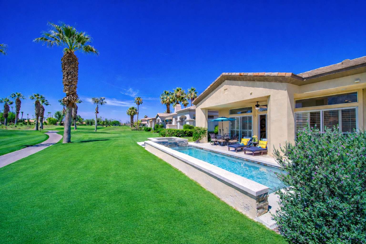 Experience the ultimate golf and resort lifestyle at PGA West, home to six world-class courses spanning over 2,000 acres. During your stay, enjoy access to three premier public courses: the Nicklaus Tournament Course, TPC Stadium Course, and Greg Norman Course—a true golfer’s paradise. Beyond the fairways, La Quinta and the Coachella Valley offer an abundance of experiences. Stroll through the charm of Old Town La Quinta, shop and dine along El Paseo in Palm Desert, or indulge in a rejuvenating treatment at the renowned La Quinta Resort Spa. For a truly unforgettable adventure, take the Palm Springs Aerial Tramway and ascend to 8,500 feet for sweeping mountain views. The region’s culinary scene is exceptional, featuring Zagat-rated restaurants, upscale dining, and vibrant nightlife throughout La Quinta and El Paseo. Outdoor enthusiasts will also appreciate nearby bike paths, tennis courts, and scenic walking trails, making the area ideal for all ages. Perfectly located near the Empire Polo Grounds, this home offers a peaceful retreat after a day on the golf course or evenings attending iconic events such as Coachella and Stagecoach. Guests can also enjoy world-class sporting events including the BNP Paribas Open Tennis Classic and the American Express (formerly CareerBuilder Challenge). Our goal is to provide a stay so memorable that you’ll want to return again and again. Your desert resort getaway awaits.