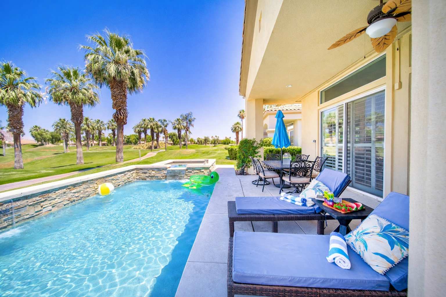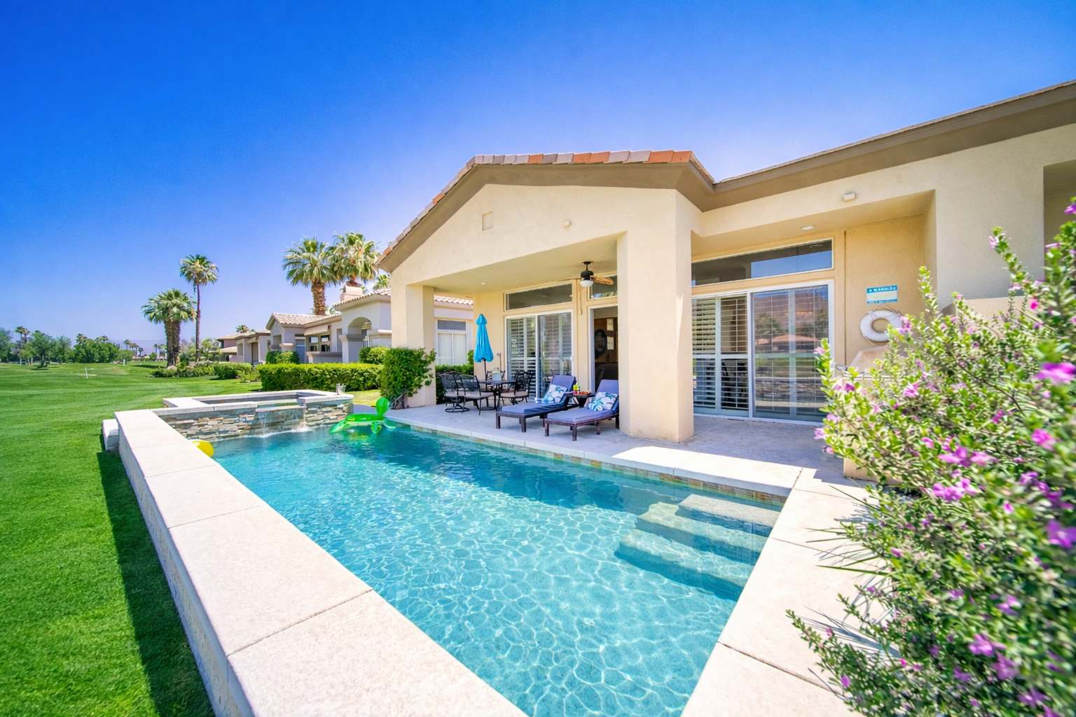 Our home is thoughtfully prepared to ensure your comfort and convenience throughout your stay. You’ll find ample closet space and bathroom drawers to help you settle in and truly feel at home. Please feel free to enjoy all kitchen amenities, and we kindly ask that everything is treated with care. To ensure a seamless arrival, a Welcome Letter will be sent one day prior to check-in. This message will include all essential details for your stay, including check-in instructions, access code information, and property guidance. Upon arrival, you’ll find a lockbox on the front gate containing a key designated exclusively for your stay. Guests will have full access to all rooms in the home, including the garage. Please note that the golf course and its walkways are private property. For everyone’s safety and in accordance with PGA West rules, trespassing onto the golf course is strictly prohibited.