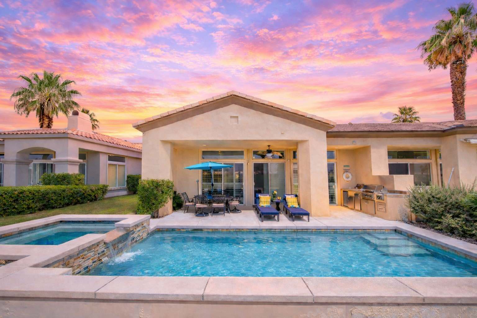 Immerse yourself in island-inspired luxury at Casa Isla Oasis, an entertainer’s dream overlooking the iconic 8th tee box (Lilly Pad) of the Jack Nicklaus Tournament Course at PGA West. Soak up the desert sun beside your private pool, unwind in the spa, or gather with loved ones at the custom outdoor BBQ station—featuring a bar, mini fridge, sink, and prep space designed for effortless entertaining. From morning coffee to sunset cocktails, take in breathtaking Santa Rosa Mountain views as every moment feels relaxed and refined. Your perfect La Quinta desert retreat awaits. Oversized vehicles, vehicles with logos are not permitted in the community overnight.